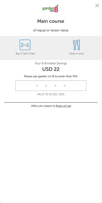 Fitur utama dari aplikasi ini mencakup kemampuan untuk menjelajahi penawaran berdasarkan lokasi dan kategori, serta melakukan penukaran langsung dari smartphone. Pengguna juga dapat melihat total penghematan yang telah didapat dan berbagi informasi tersebut dengan keluarga dan teman melalui media sosial. Dengan antarmuka yang sederhana dan fungsional, aplikasi ini menjadi pilihan tepat bagi mereka yang ingin menikmati pengalaman bersantap yang lebih hemat.